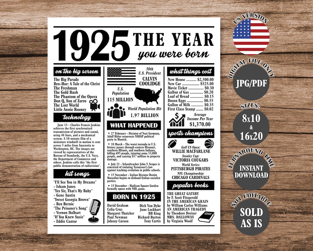 1925 the Year You Were Born Back in 1925 Poster What Happened in 1925