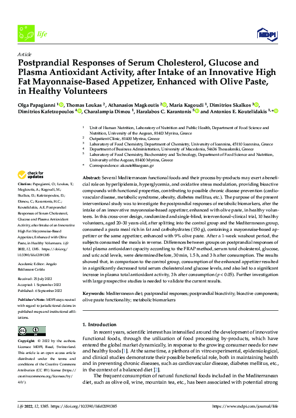 (PDF) Postprandial Responses of Serum Cholesterol Glucose and Plasma