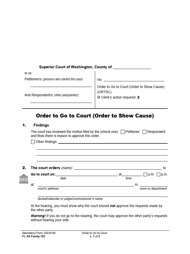 FL All Family 183 Order To Go To Court Blank PDF Judge Courts