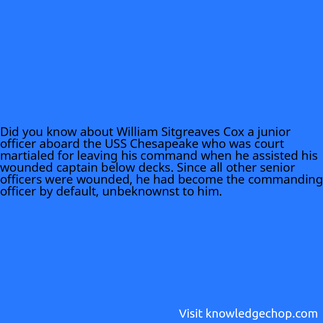 about William Sitgreaves Cox a junior officer aboard the USS Chesapeake