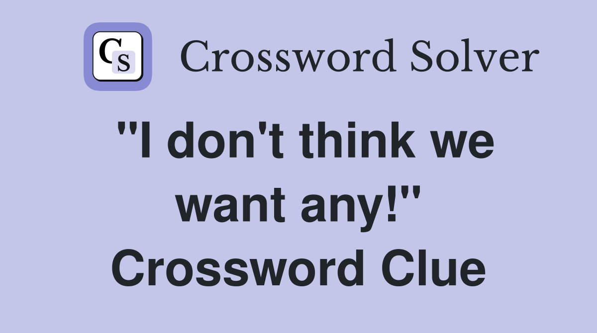 quot I don #39 t think we want any quot Crossword Clue Answers Crossword Solver