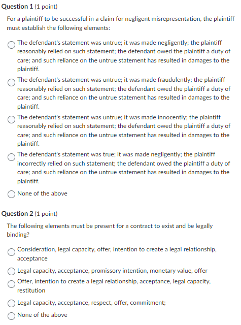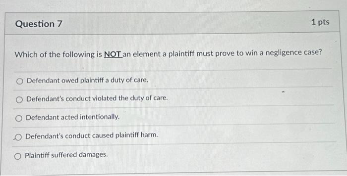 Solved Which of the following is NOT an element a plaintiff Chegg com