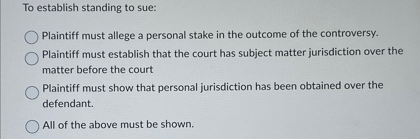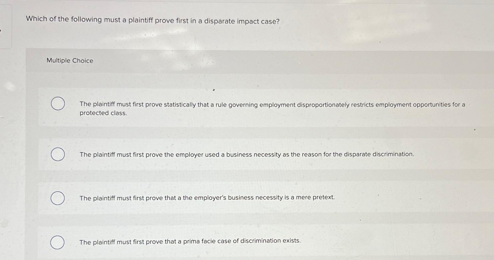 Solved Which of the following must a plaintiff prove first Chegg com