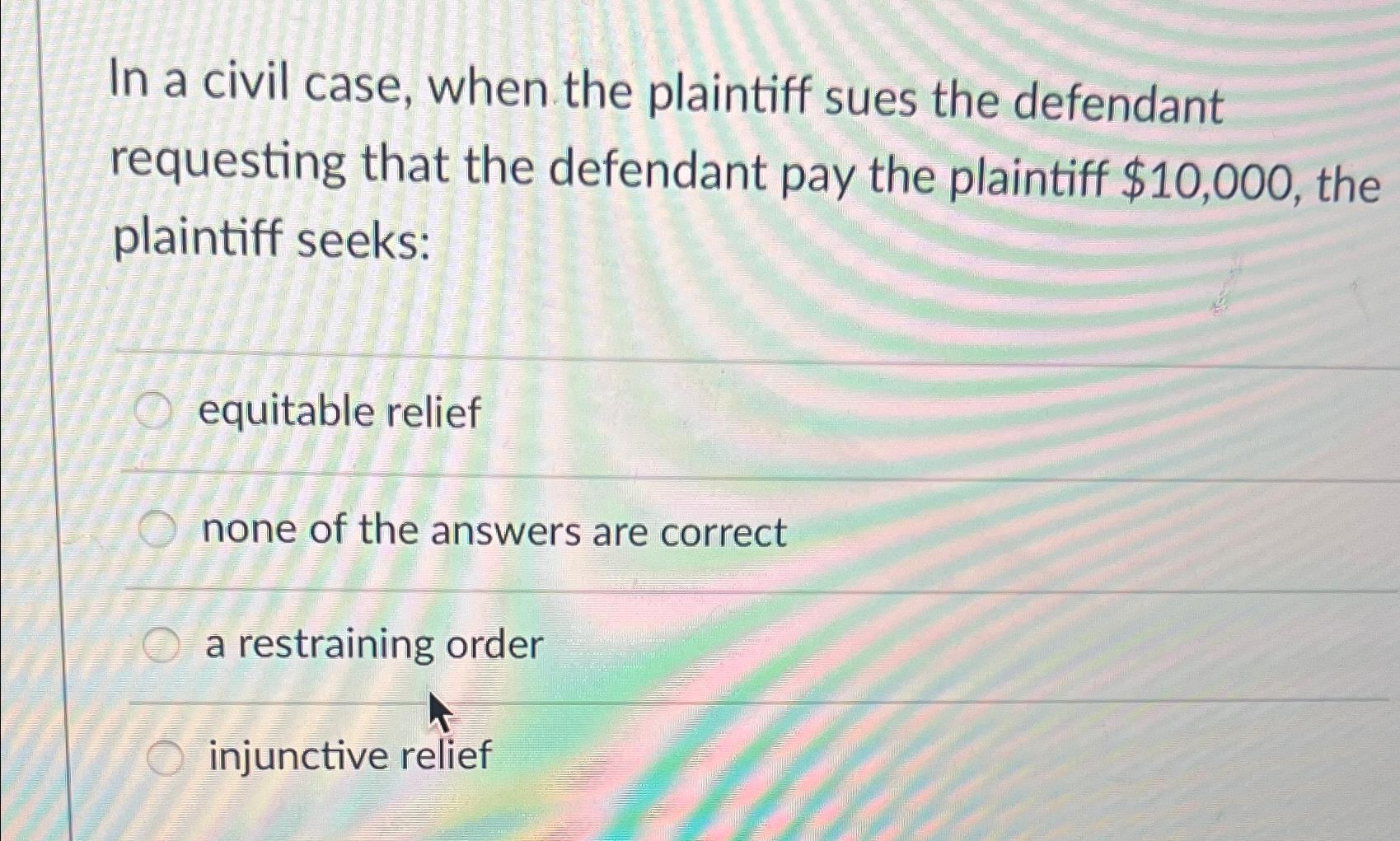 Solved In a civil case when the plaintiff sues the Chegg com