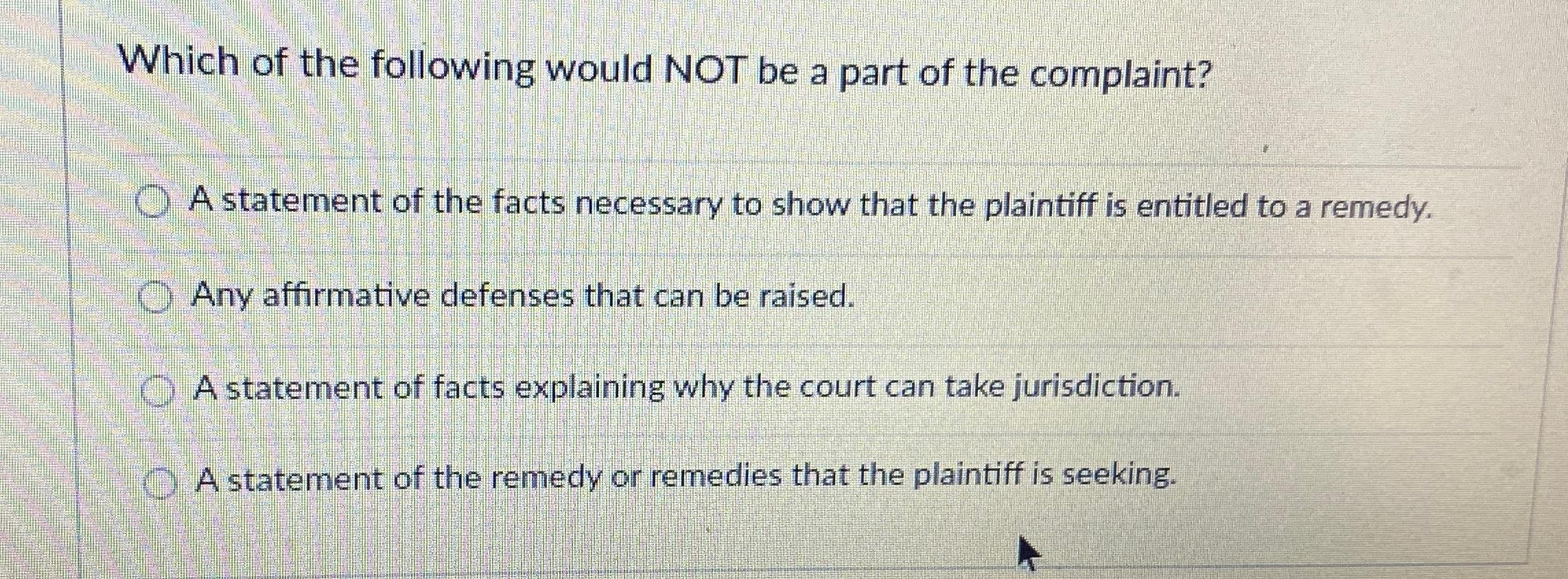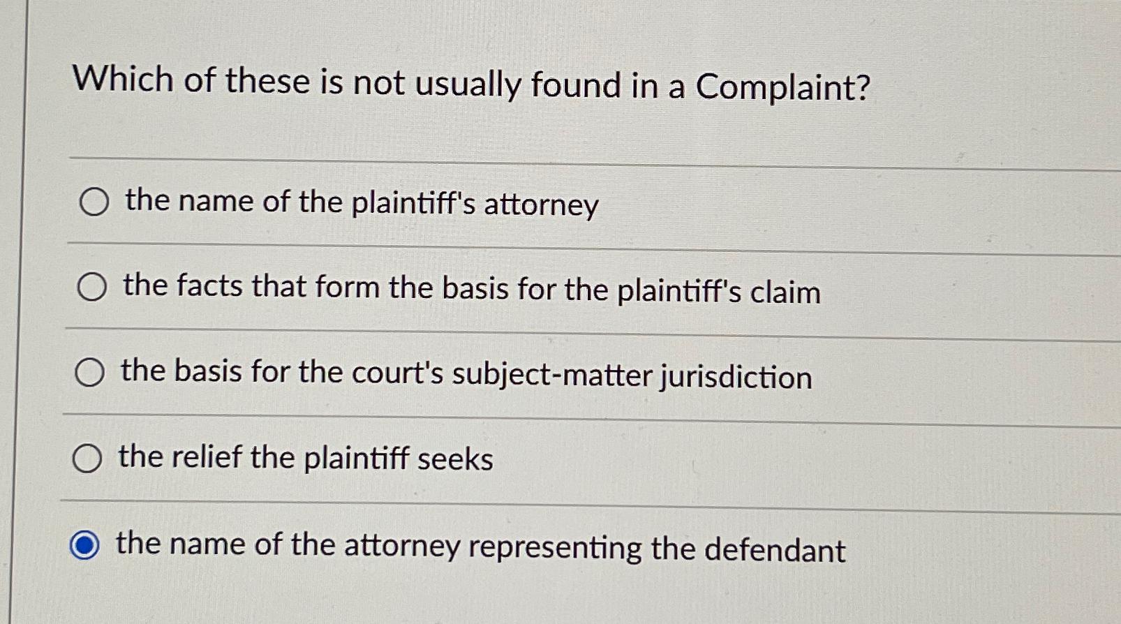 Solved The plaintiff s complaint must contain all the Chegg com