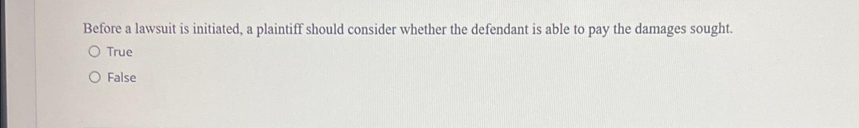 Solved Before a lawsuit is initiated a plaintiff should Chegg com