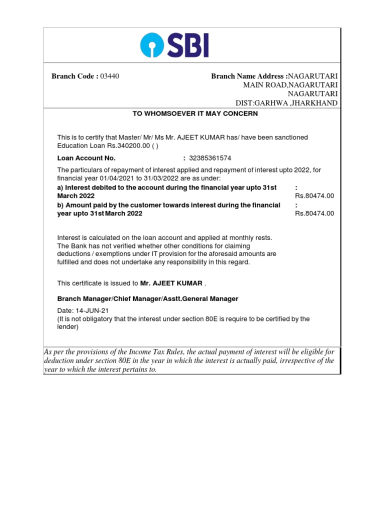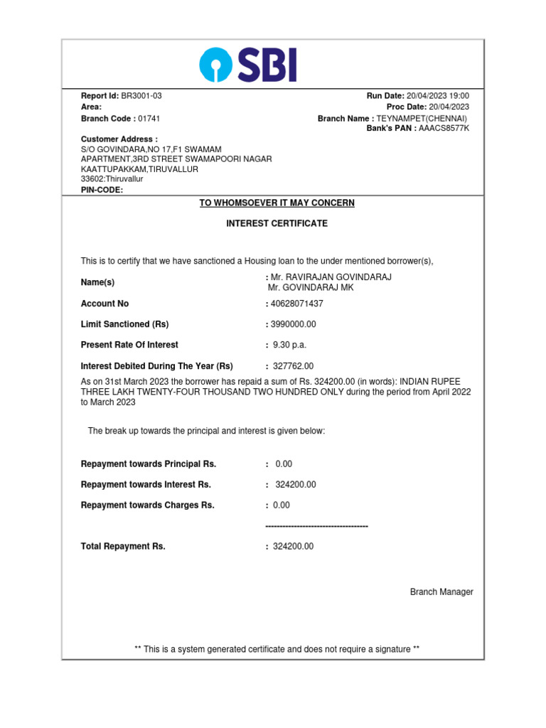 2021 22 State Bank Of India (SBI) Home Loan Certificate Download SBI