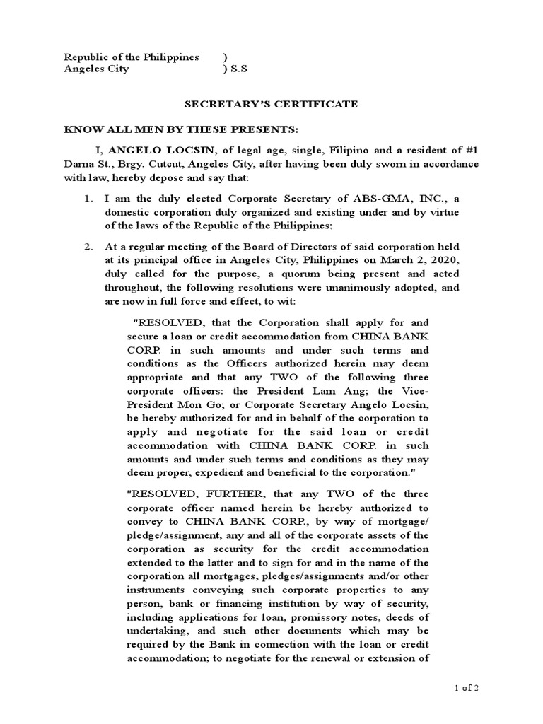 Form12 Secretary Certificate Loan PDF Loans Mortgage Law