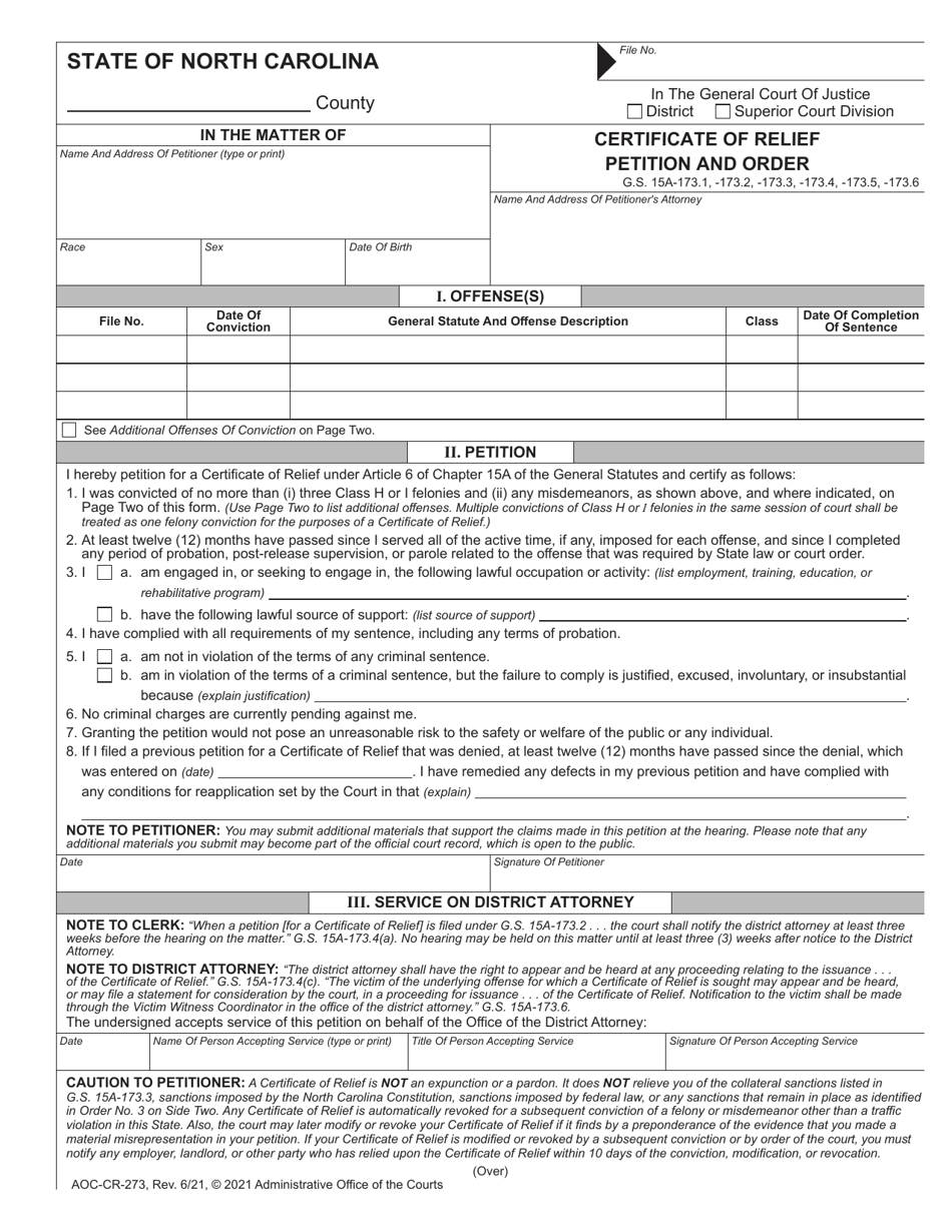 Download Instructions for Form AOC CR 273 Certificate of Relief