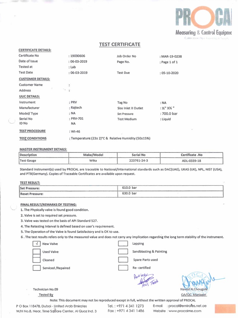 Certificate of Relief Valve Capacity (PROCA) 7 PDF PDF