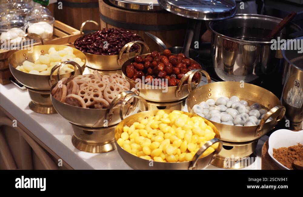 Thai sweet things in Bangkok food court: sweets cookies berries Stock
