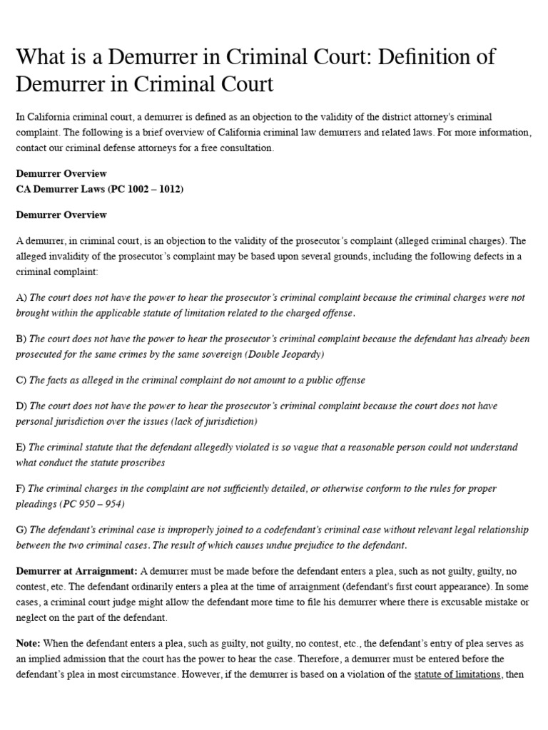 What Is A Demurrer in Criminal Court: Definition of Demurrer in