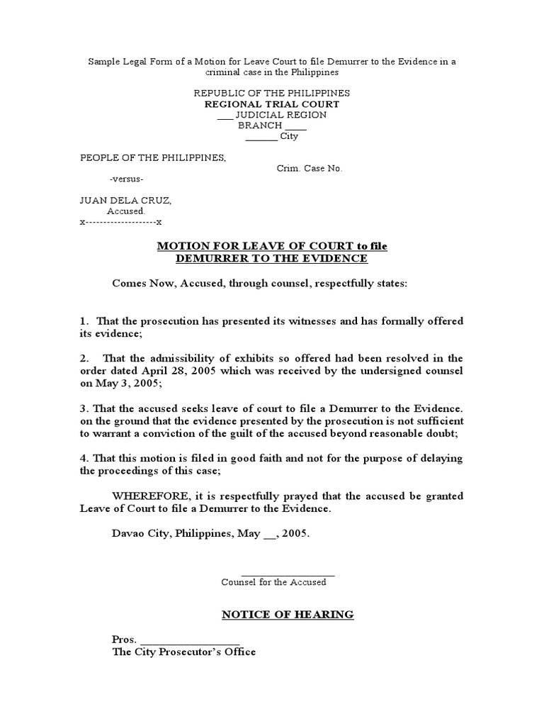 Motion For Leave of Court To File Demurrer To Evidence Scribd Google