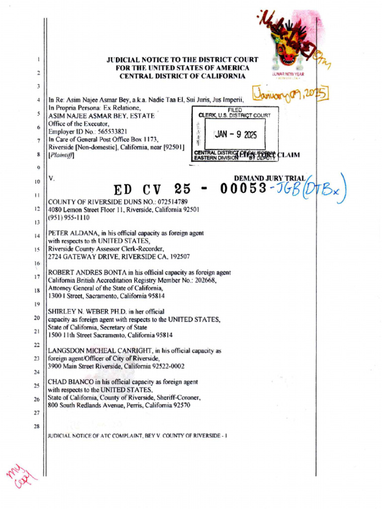 JUDICIAL NOTICE TO THE DISTRICT COURT FOR THE UNITED STATES OF AMERICA