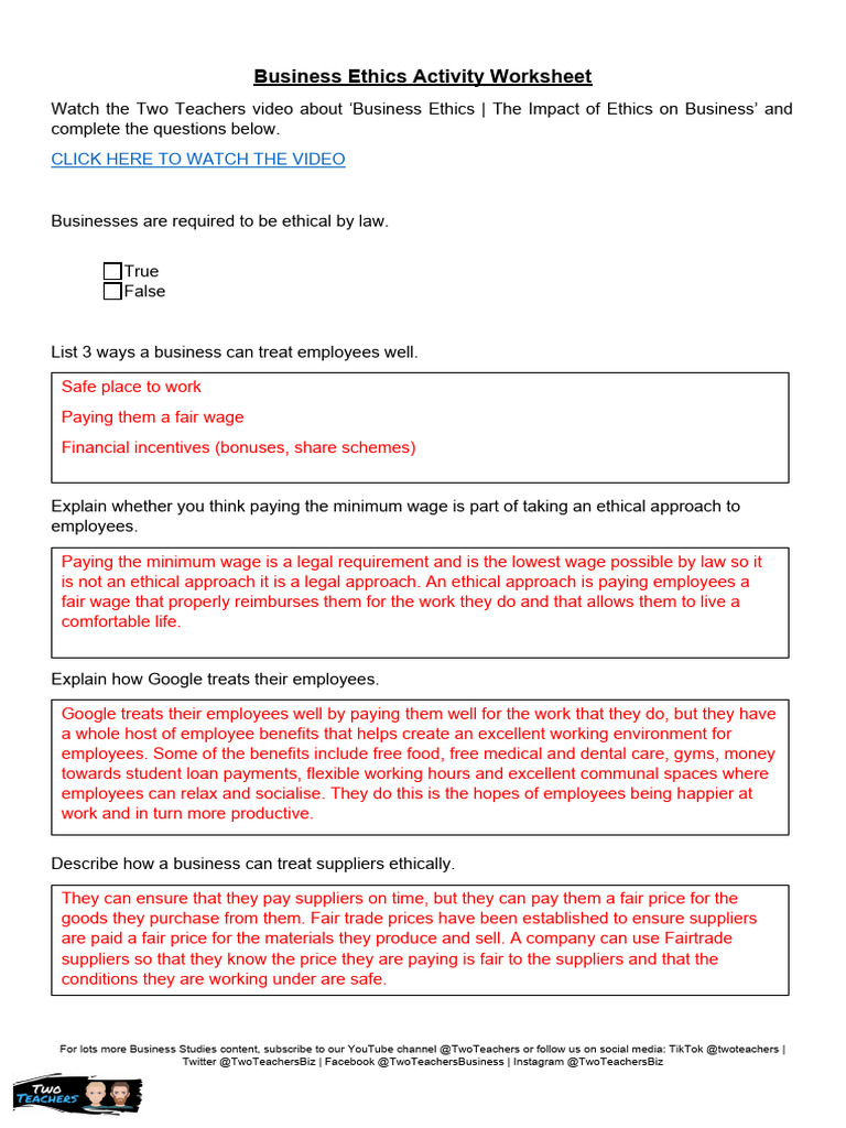 Business Ethics ANSWERS PDF Employment Fair Trade