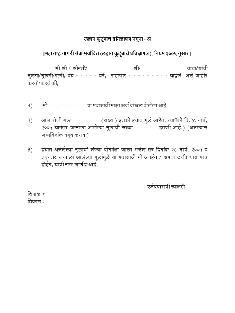 विभक्त कुट ूंब प्रमाणपत्र Nuclear Family Certificate PDF PDF