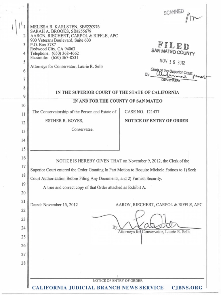 VL Order Judge Jonathan Karesh Against Michelle Fotinos: San Mateo