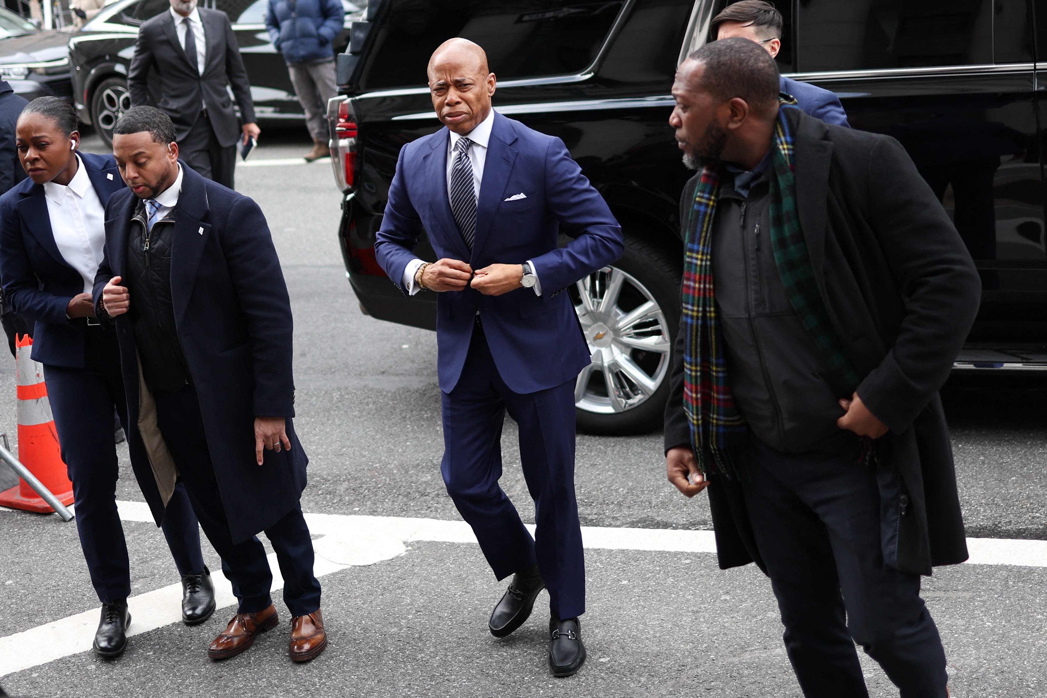 Handful of activists protest against Mayor Eric Adams as he arrives in