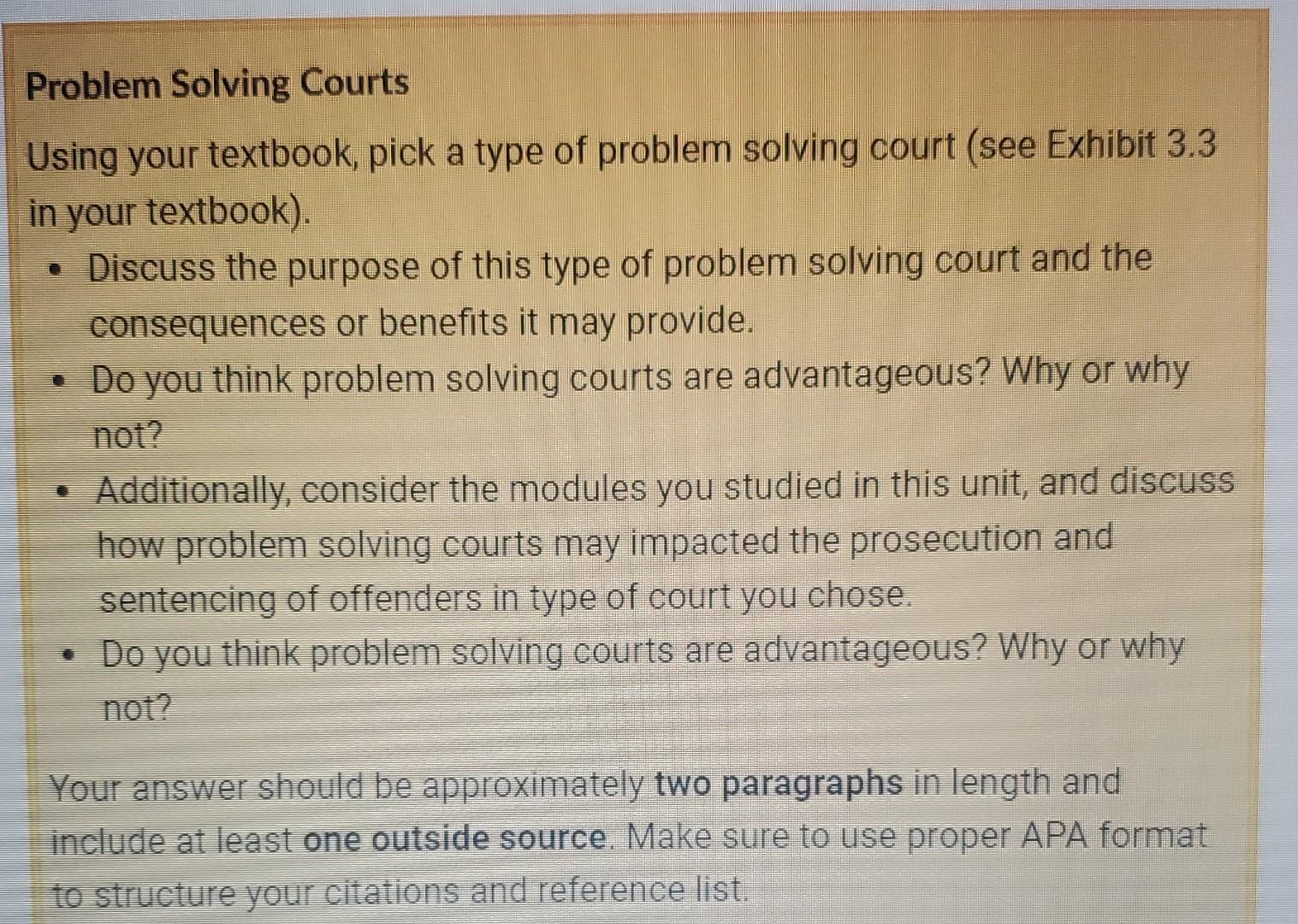 Solved Problem Solving Courts Using your textbook pick a Chegg com