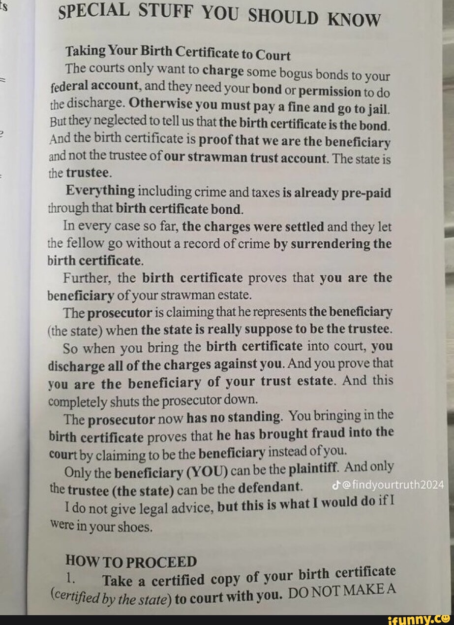 SS SPECIAL STUFF YOU SHOULD KNOW Taking Your Birth Certificate to Court