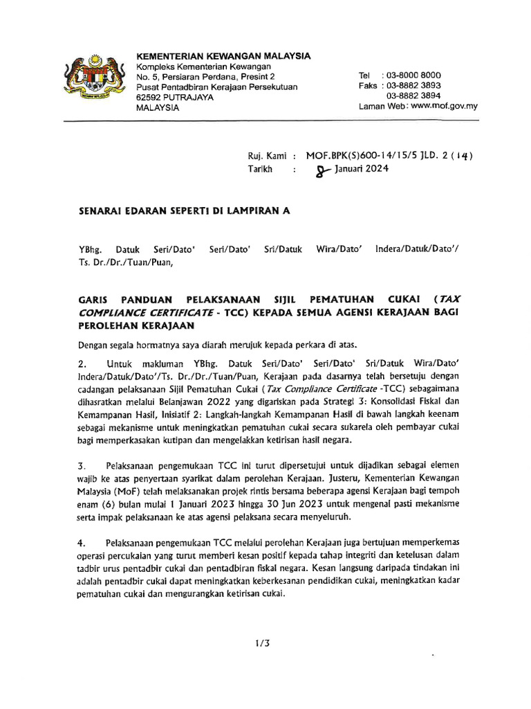 Garis Panduan Pelaksanaan Sijil Pematuhan Cukai (Tax Compliance