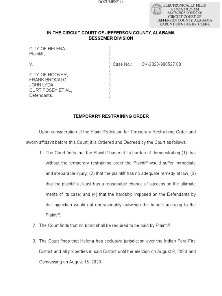 Helena Vs Hoover Tro Through July 26thpdf PDF Injunction Virginia
