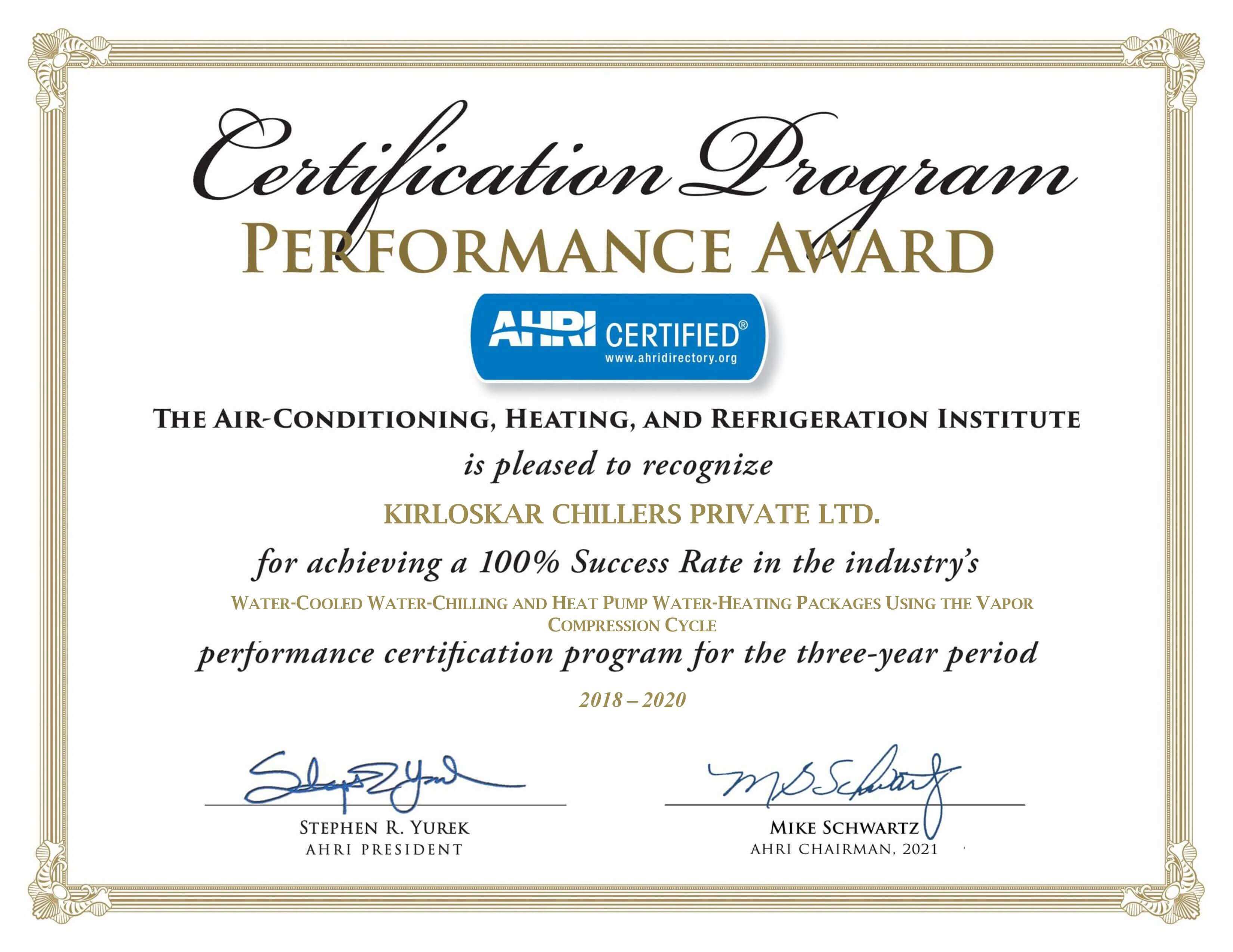 Certifications Awards Kirloskar Chillers