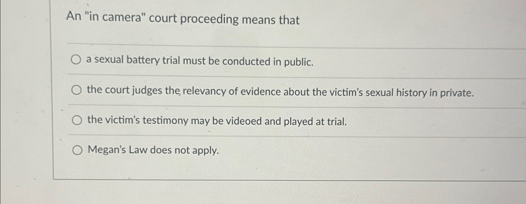 Solved An quot in camera quot court proceeding means thata sexual Chegg com
