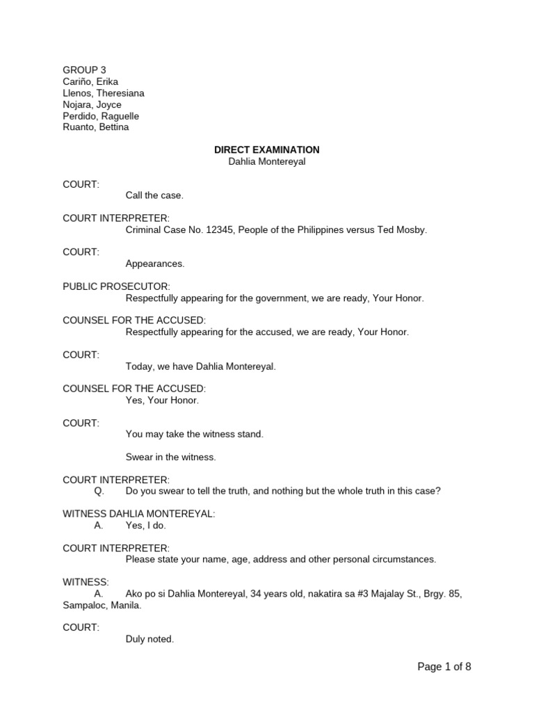 Direct Examination Sample Format PDF Witness Affidavit