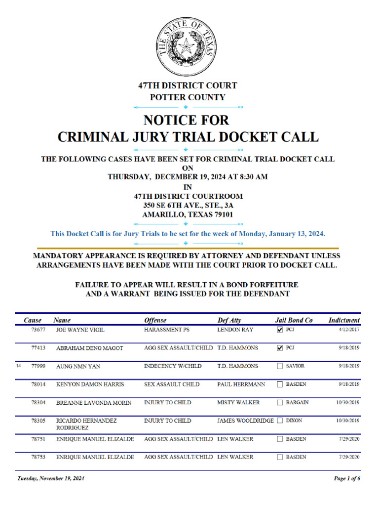 What Is Pre Indictment Docket Call Septiery