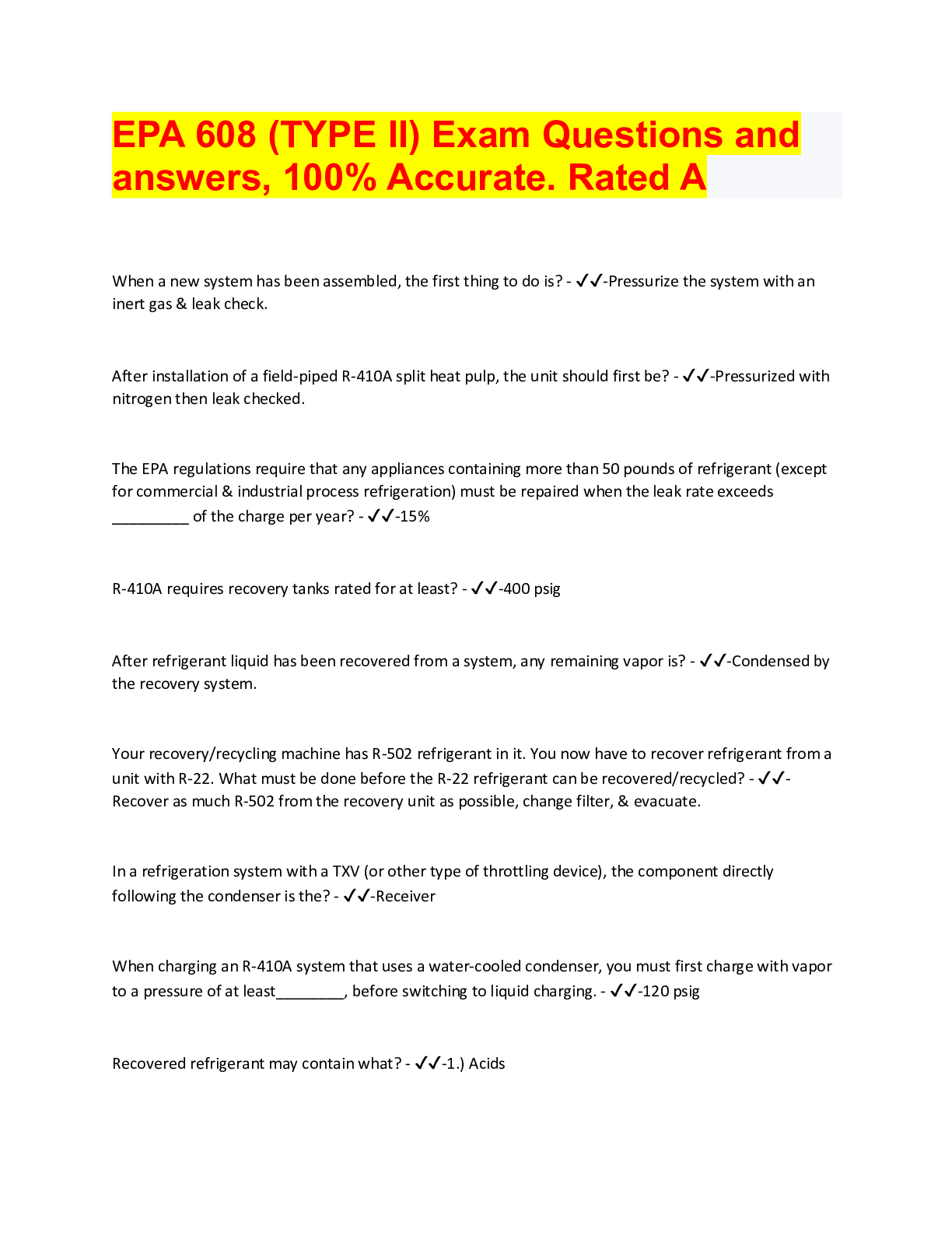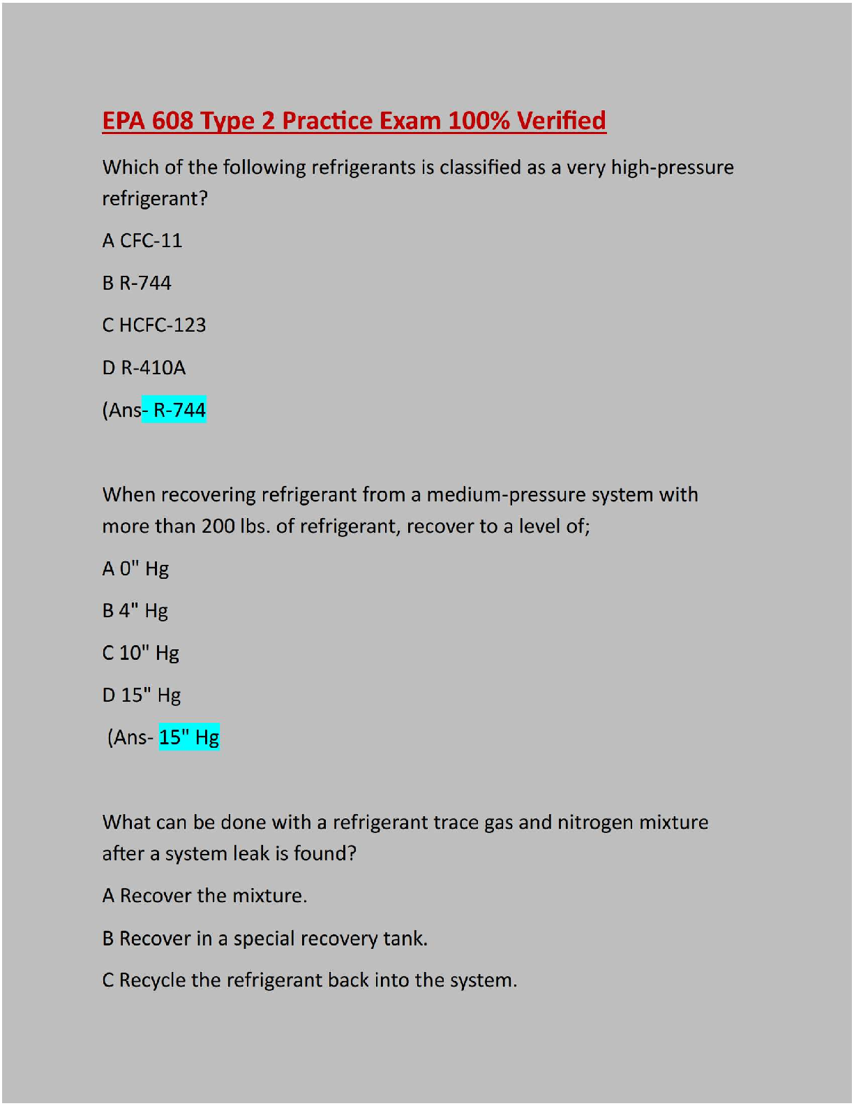 EPA Type 2 Exam Questions and Answers EPA 608 Stuvia US