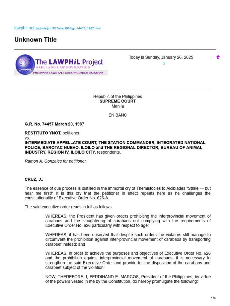 Ynot vs Intermediate Appellate Court Due Process Clause United