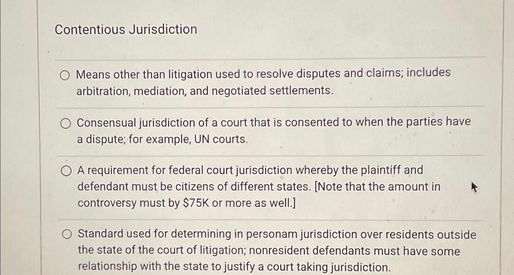 Solved Contentious JurisdictionMeans other than litigation Chegg com