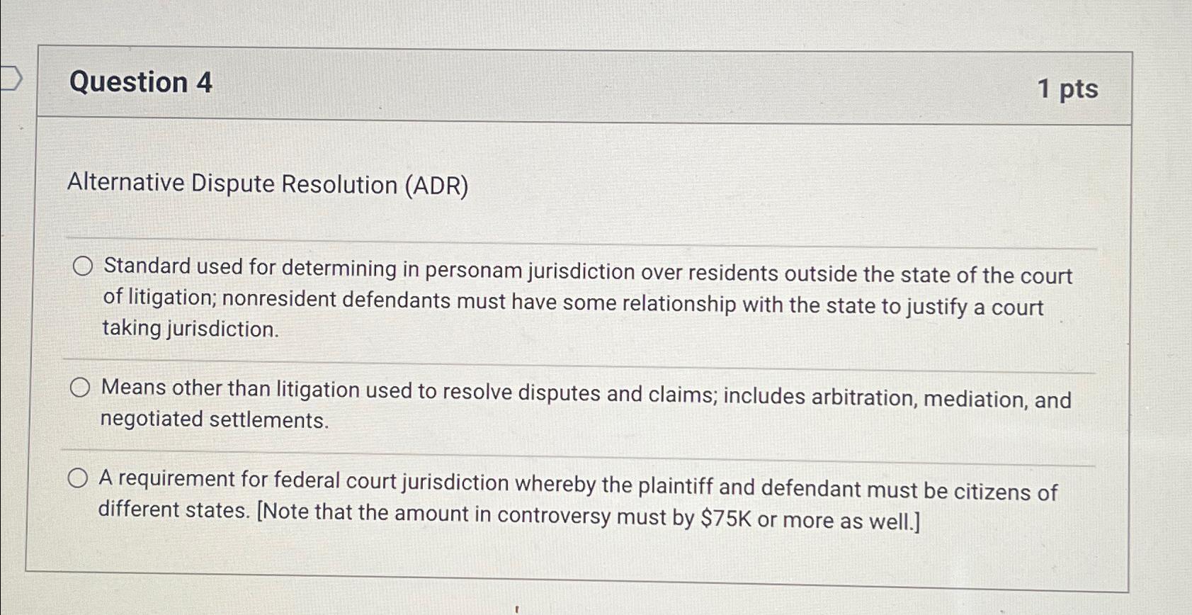 Solved Question 41 ptsAlternative Dispute Resolution Chegg com