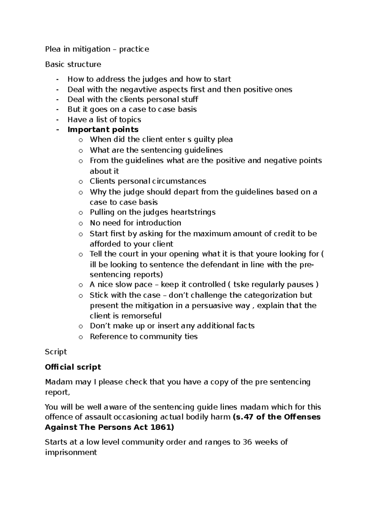 Plea in Mitigation: Strategies for Effective Court Presentation Studocu