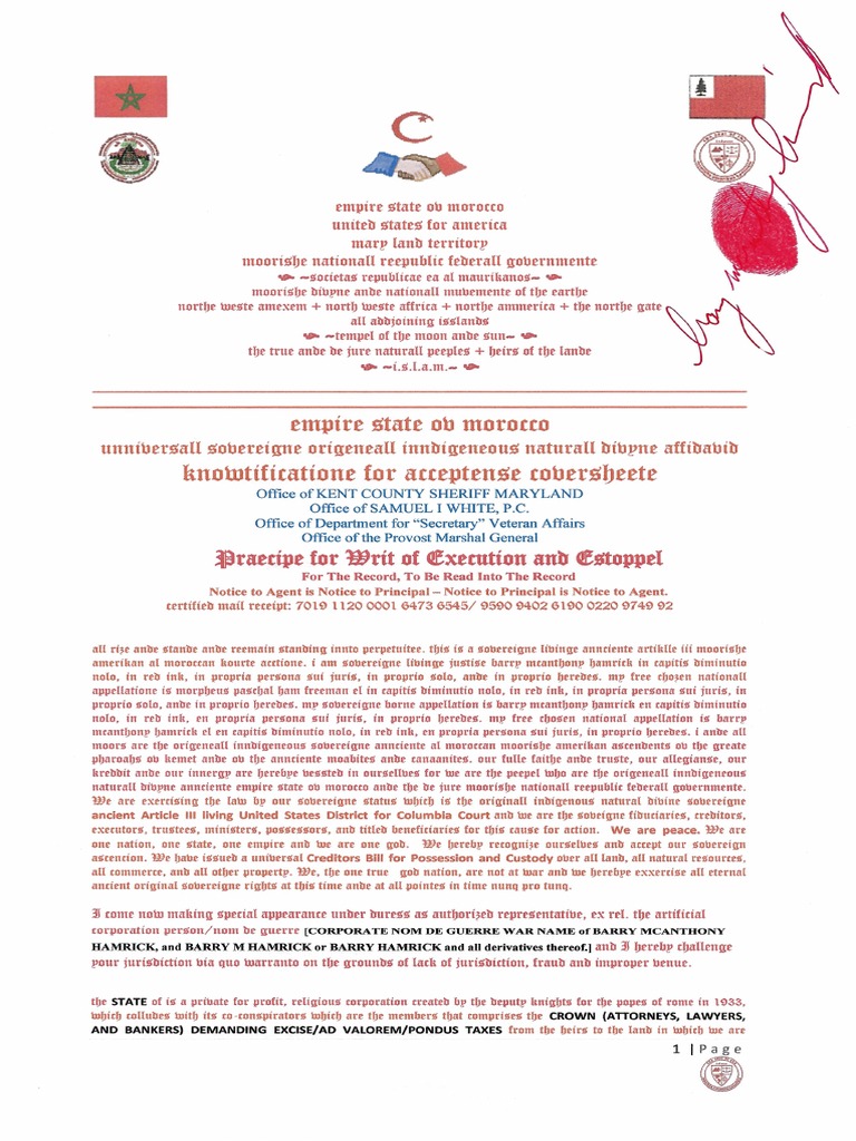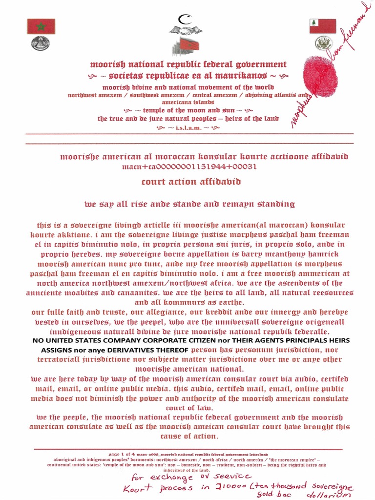 Empire State Ov Morocco Article III Consul Court Affidavids Name Change