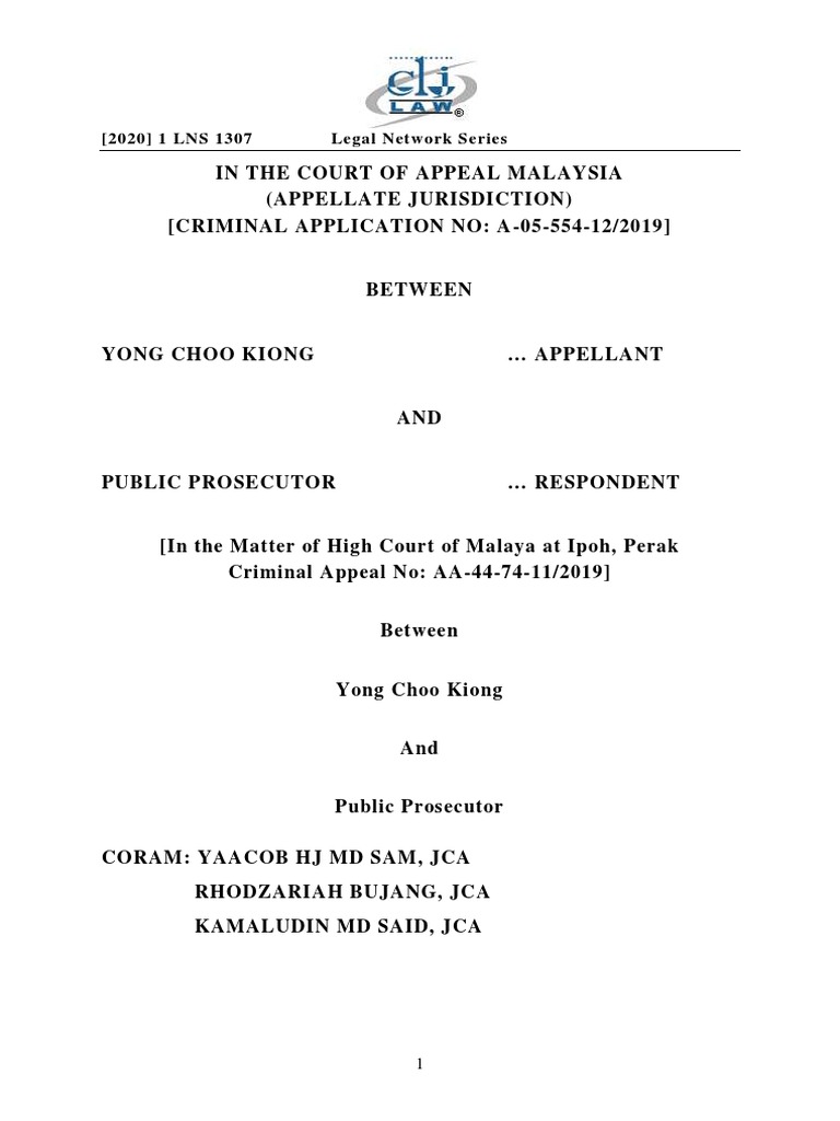 YONG CHOO KIONG v PP COURT OF APPEAL PUTRAJAYA PDF Appeal