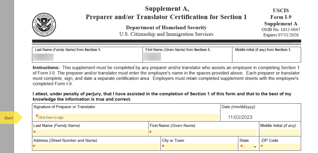 Form I 9 Supplement Section 1 Preparer and/or Translator : Fill out
