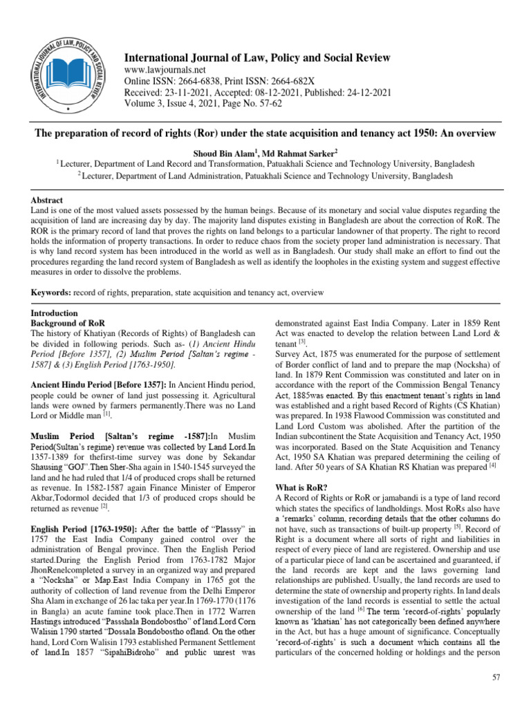 Alam The Preparation of Record of Rights (Ror) Under The State