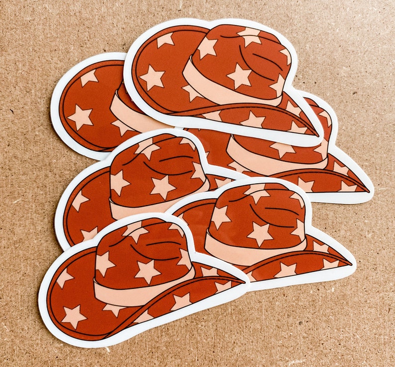 Cowboy Hat Sticker Star Print Waterproof Vinyl Etsy