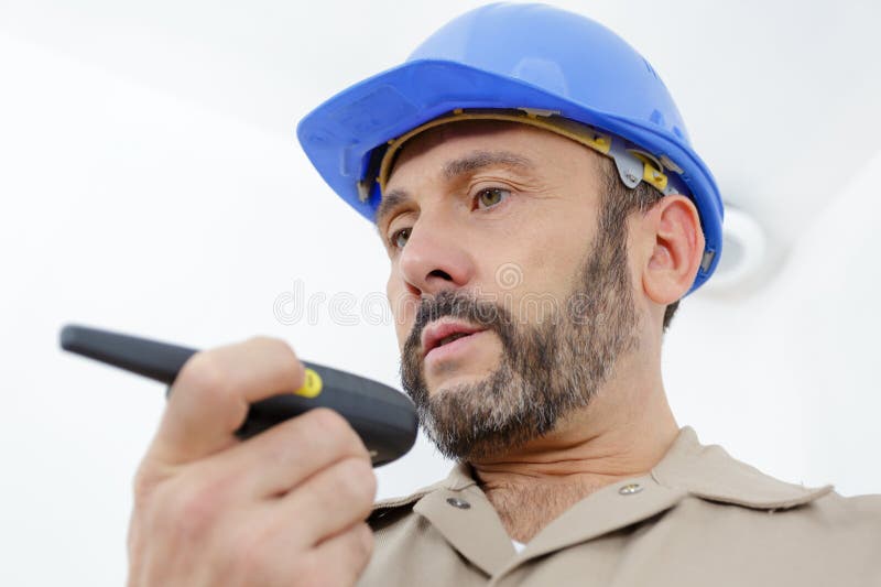 Mature Worker Talking into Walkie talkie Stock Photo Image of radio