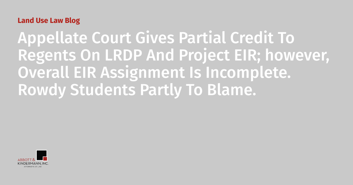 Appellate Court Gives Partial Credit To Regents On LRDP And Project EIR