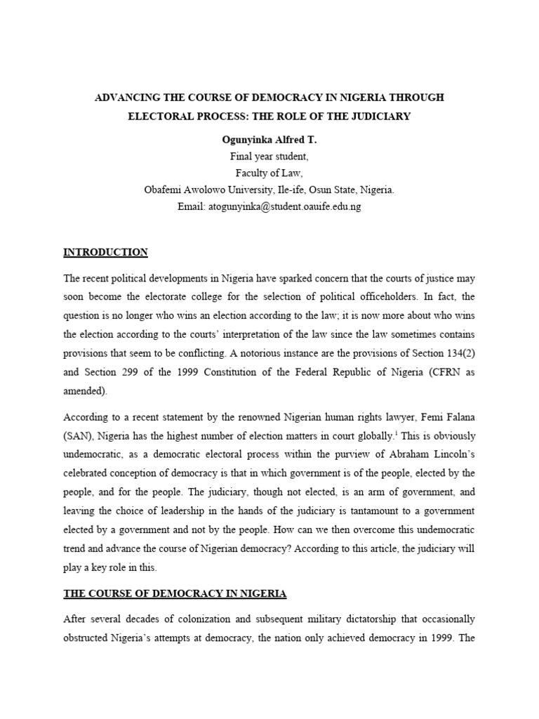 Advancing The Course of Democracy in Nigeria Through Electoral Process