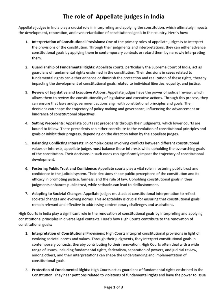 The role of Appellate judges in India PDF Precedent Judgment (Law)