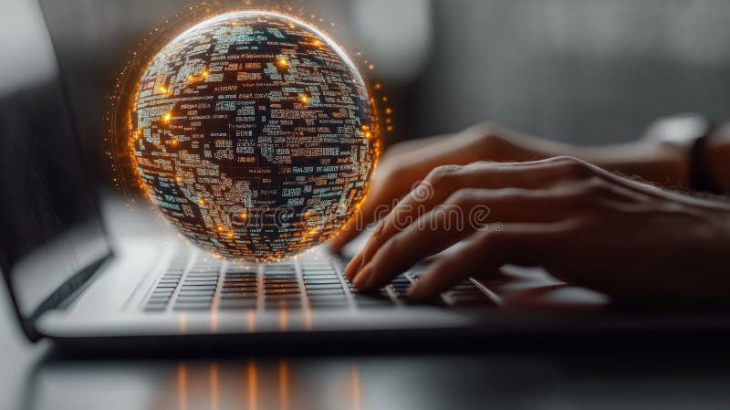 Person Types on Laptop Global Communication Software Appears Above