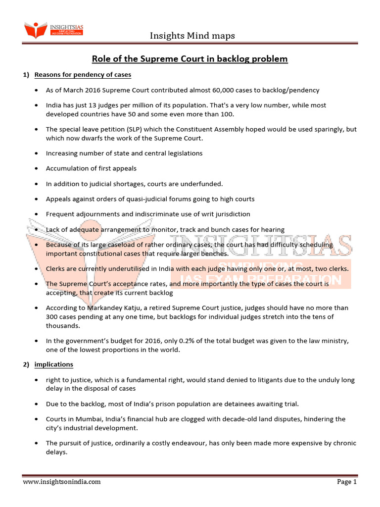 Role of The Supreme Court in Backlog Problem Download Free PDF