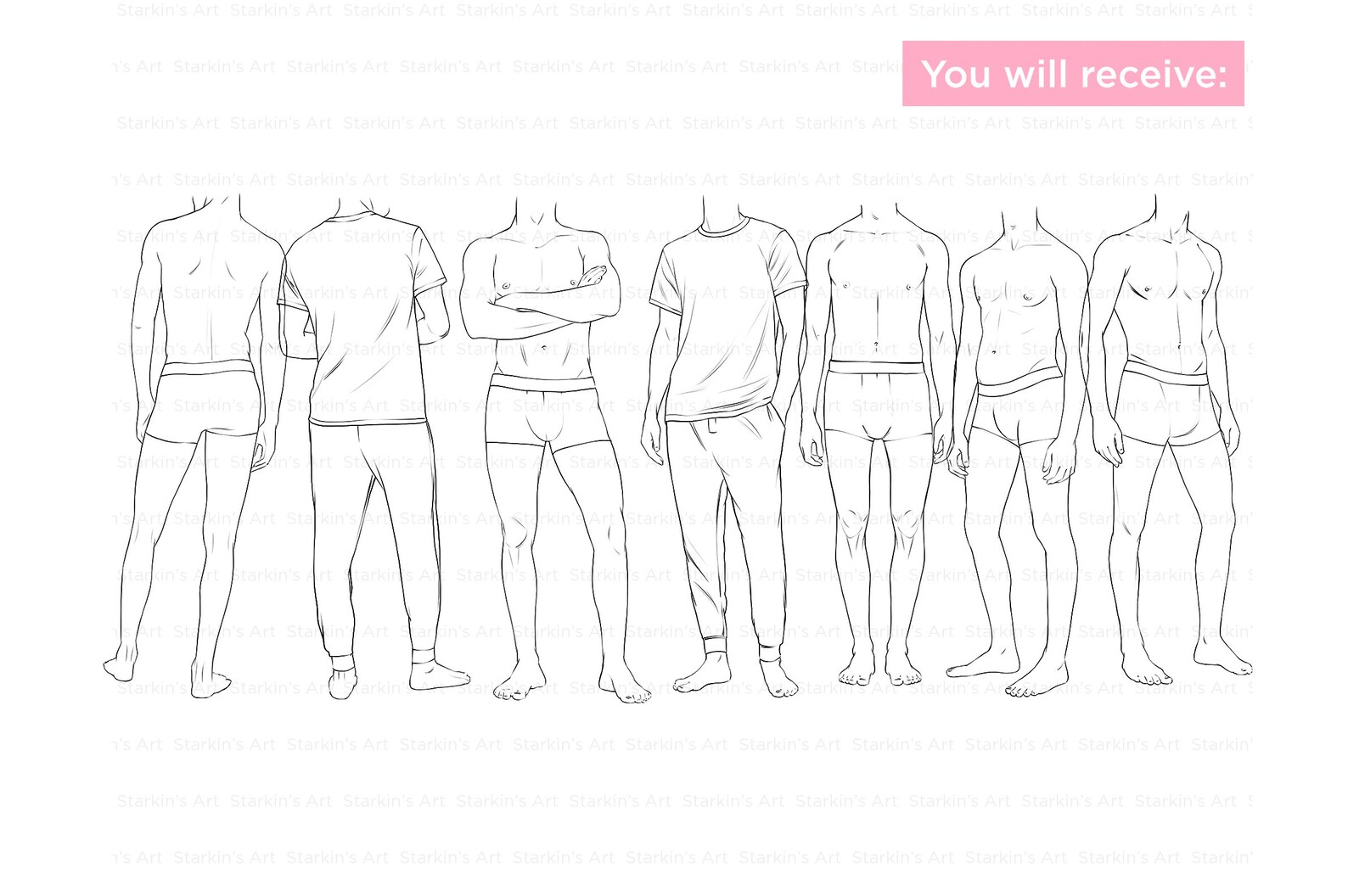 Fashion template of man 9 head size for technical drawing man fashion