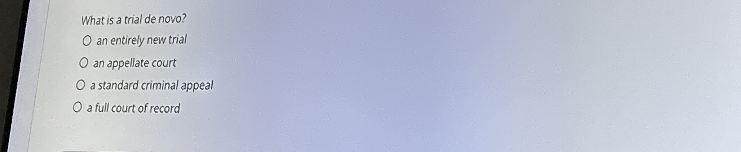 Solved What is a trial de novo?an entirely new trialan Chegg com