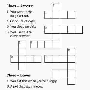 Kids Crossword Puzzle Etsy