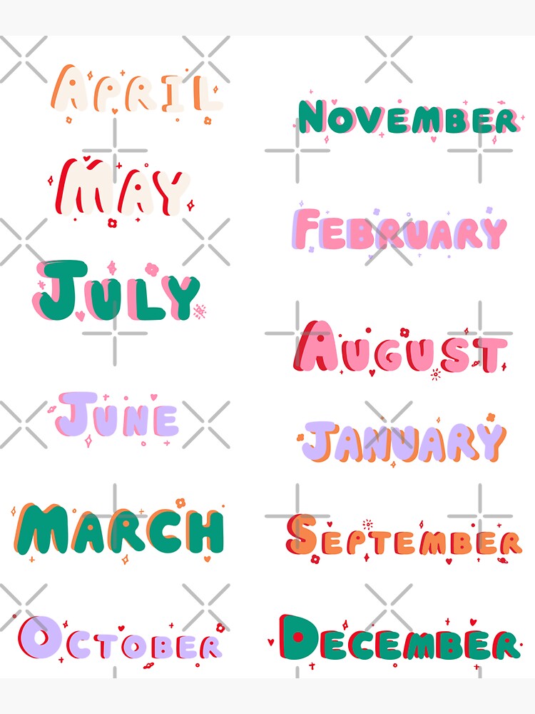 quot Months of the Year quot Sticker for Sale by frumiosity Redbubble